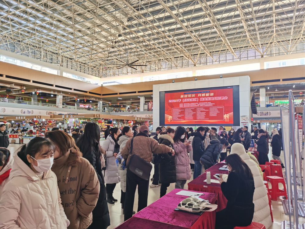 室外白雪皑皑,室内温暖如春。招聘会组织南昌杉杉奥特莱斯购物广场、南昌市天虹商场有限公司、江西省妇幼保健院等41家用人单位参加,发布就业岗位1074个,吸引270余人次进场求职,简历投递75份,初步达成就业意向23人,视频直播带岗线上观看人数达3664人次。