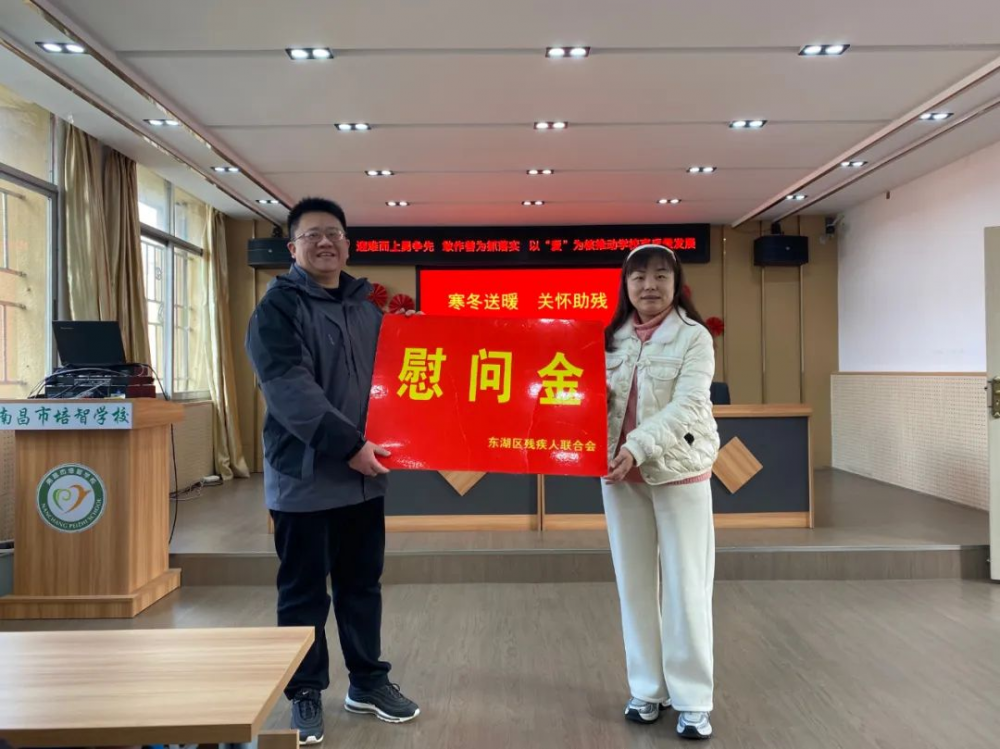 1月25日下午,东湖区残联党组书记、理事长张勇,党组成员、副理事长占南生一行到南昌市培智学校开展春节走访慰问活动,给特教学校的孩子们送去了节日的祝福。