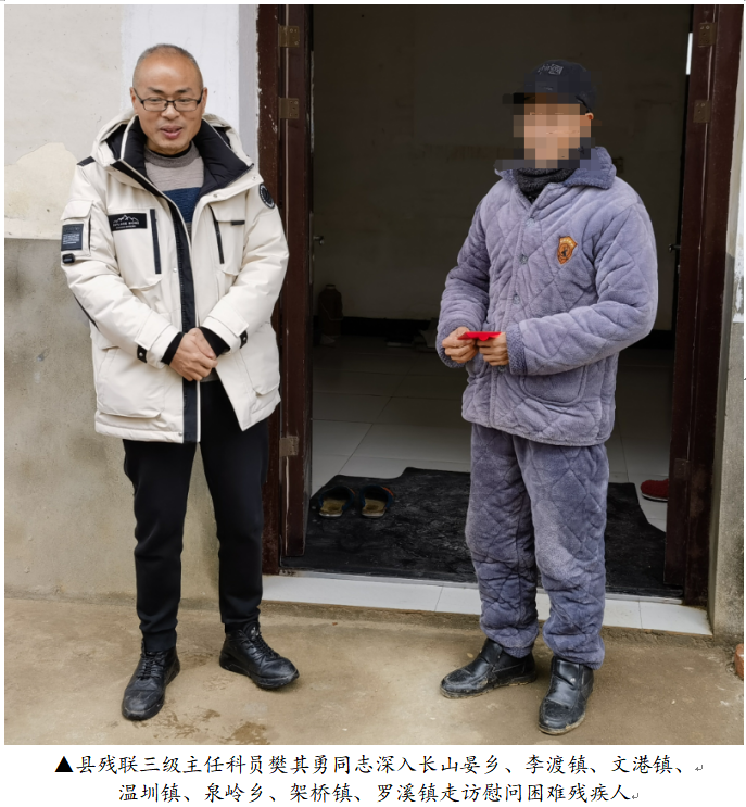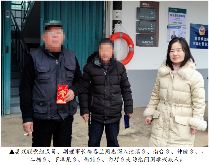为进一步营造全社会扶残助残良好氛围,使残疾人朋友过一个欢乐、祥和、喜庆的春节,进贤县残联在全县范围内深入开展“迎新春送温暖”走访慰问困难残疾人活动。