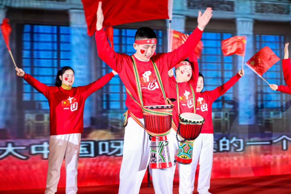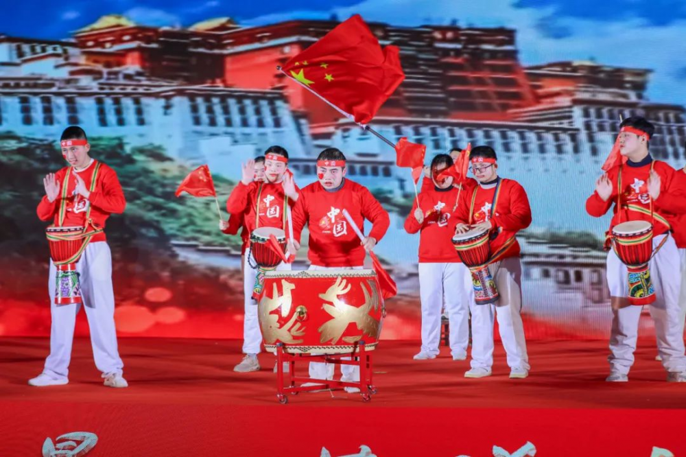 在猎猎翻飞的红旗中,在隆隆雷动的鼓声中,在孩子们频频展开的笑颜中,也在服装道具、舞台布置和荧幕背景奔涌的红色海洋中,红萌艺术团为观众们献上大型鼓舞《大中国》,歌颂祖国的壮丽江山与宏伟成就,赞美党和人民的团结奋斗。