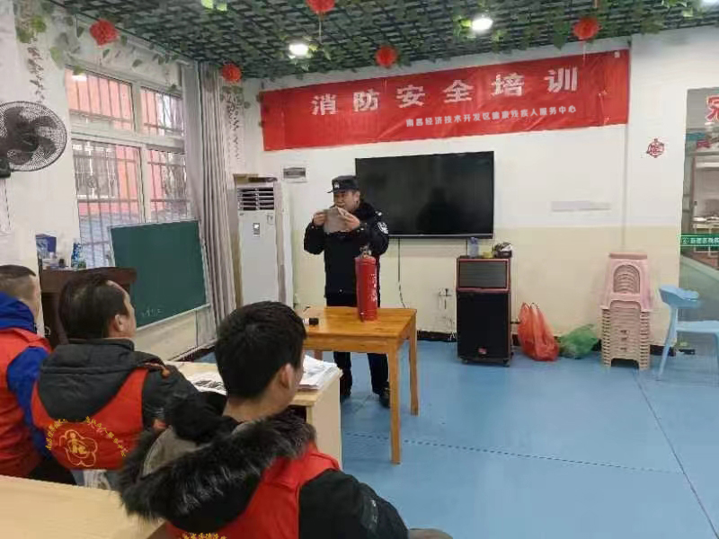 为全力维护残疾人工作领域安全稳定,2月2日,南昌经济技术开发区德康残疾人服务中心开展消防应急培训演练以及消防安全应急知识培训,特邀属地乐化镇派出所陶警官亲自授课,中心师生及托养学员参加了消防应急演练培训。