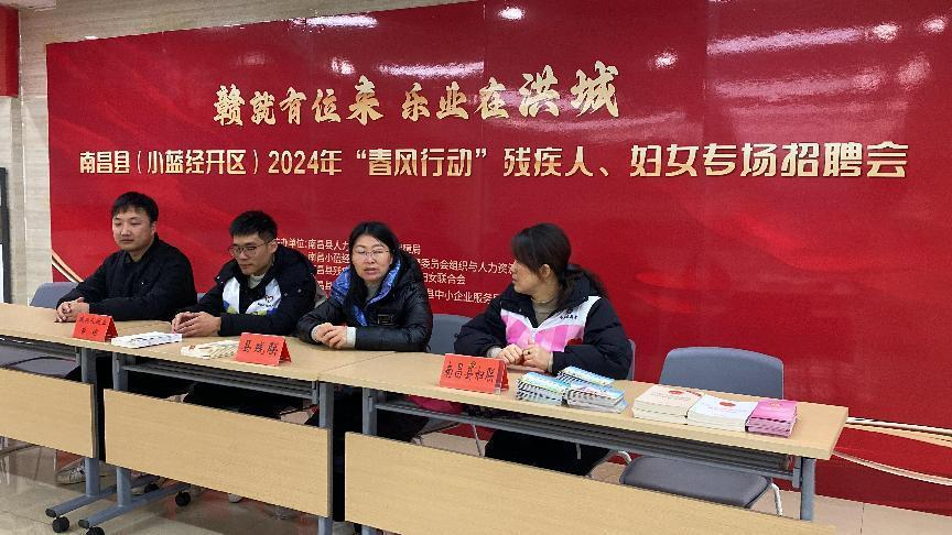 春风送岗促就业,精准服务助发展。2月29日,南昌县残联联合县就业局、县妇联开展赣就有位来•乐业在洪城南昌县(小蓝经开区)2024年“春风行动”残疾人、妇女专场招聘会。