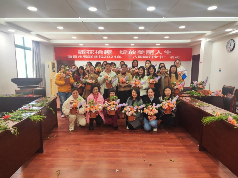 为庆祝2024年“三八国际妇女节”,进一步丰富女干部职工精神文化生活,增强凝聚力和向心力,3月8日上午,南昌市残联组织女干部职工开展了以“插花拾趣、绽放美丽人生”为主题的插花活动。