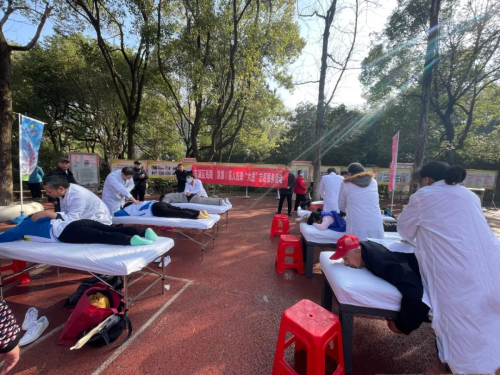 3月3日上午,东湖区残联组织辖区盲人按摩机构在八一公园积极开展南昌(洪派)盲人按摩“六进”志愿服务活动,邀请辖区吴氏盲人按摩店的6名技师组成志愿服务队,现场进行免费的按摩推拿服务,针对居民肩颈、腰椎等部位的不适症状,为其舒筋活络、捏揉按摩,并提供了穴位知识、健康咨询等服务,活动扩大了“南昌盲人按摩”品牌影响力,对盲人按摩事业的发展起到了良好的推动作用。