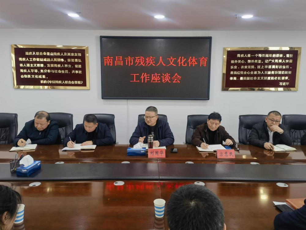 3月12日下午,市残联在五楼会议室召开南昌市残疾人文化体育工作座谈会,市残联党组成员、副理事长刘国华出席会议,市残联四级调研员宗慧民主持会议。市盲人协会、市聋人协会、市肢残人协会主席、副主席、秘书长和市残联宣文科、市残疾人康体中心、市残疾人就创中心负责人及相关工作人员参加会议。