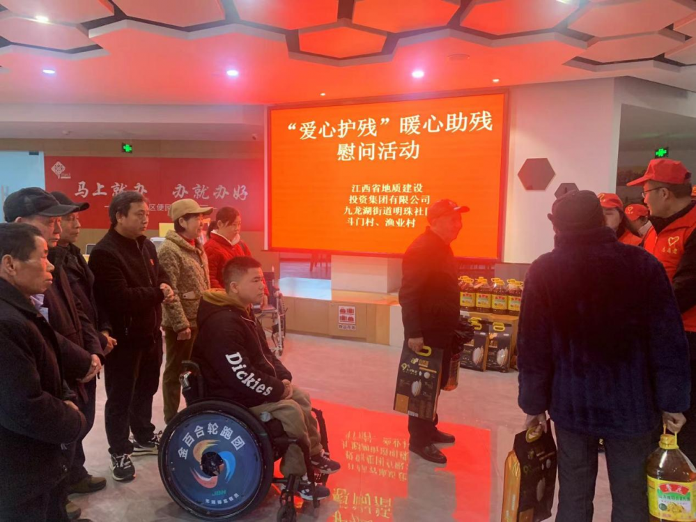 活动中,江西省地质建设投资集团副总经理蔡文宇、纪委书记薛磊等领导给明珠社区残疾老人送上油、米等生活物资,并关切询问他们的生活情况。明珠社区书记袁芳向蔡文宇一行介绍在残疾人“小赣事”程星星及社区残疾人之家建设情况,蔡文宇一行表示赞赏,表示将继续支持助残事业。