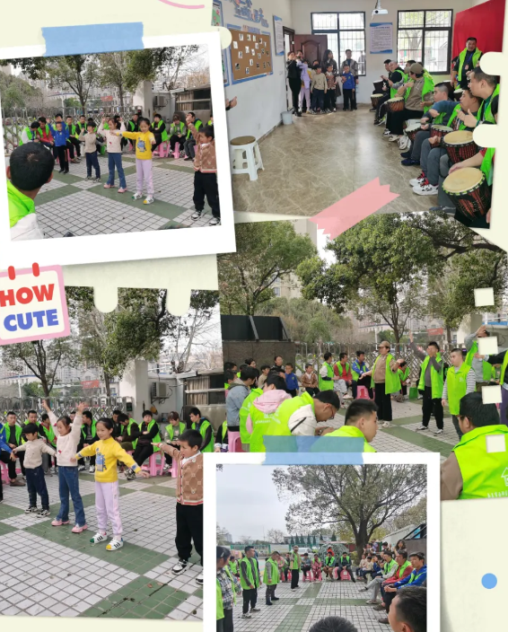 一走进托养中心,残疾托养学员动感十足的非洲鼓表演就吸引了孩子们。观看完表演,孩子们来到烘焙房,和学员一起交流、互动、制作蛋挞。而后,大家在操场上围坐一圈,一起参与互动游戏。残疾学员表演的手势舞《感恩的心》引得全场阵阵掌声;5位孩子表演的“五禽戏”更是博得大家的喝彩;“抢座位”游戏大家都喜欢玩,你争我抢,热热闹闹,操场上回荡着大家开心的笑声。游戏结束,空气中弥漫着诱人的香气,哦!是蛋挞做好了。