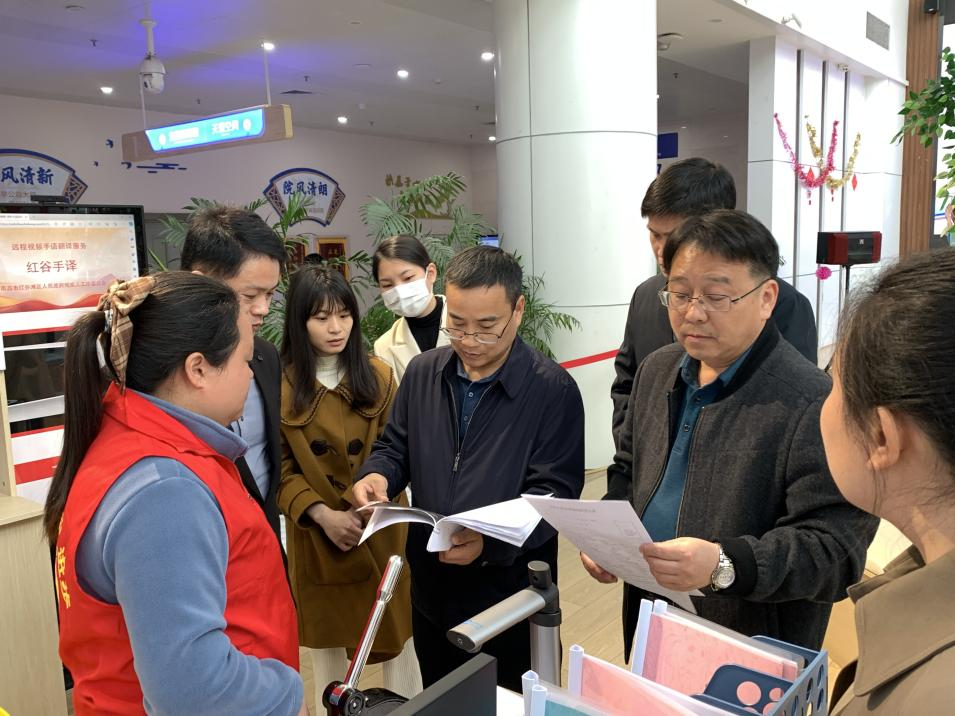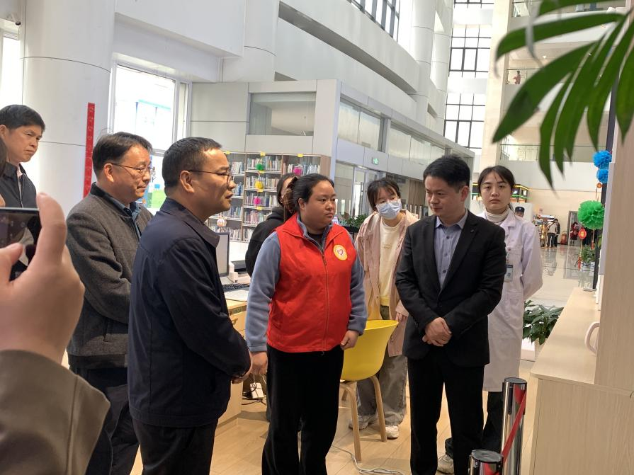 3月27日上午,江西省残联组联处处长孙鹏飞、南昌市残联副理事长吴卫平一行5人来到南昌大学第二附属医院(红角洲院区)无声小赣事专窗调研办理残疾人证和“两项补贴”申请工作。红谷滩区残联理事长贺学风陪同。