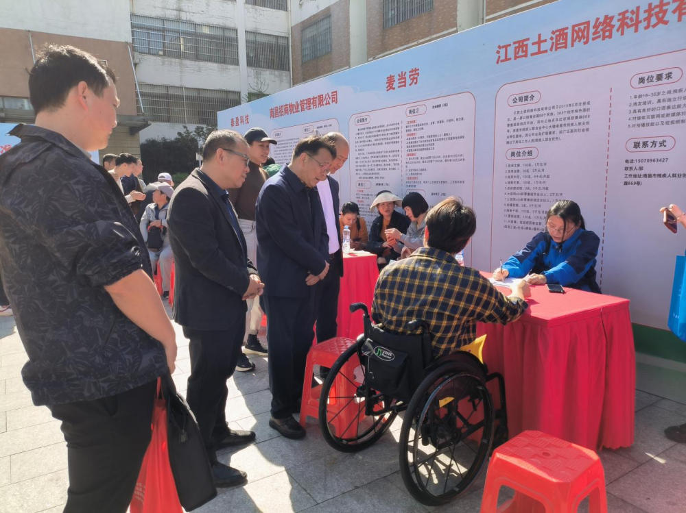 3月29日上午,市残联在青山湖区绿康国际老年城举办了2024年“春风行动”残疾人招聘会,市残联党组成员、副理事长吴卫平,青山湖区党组书记、理事长余国权参加活动。
