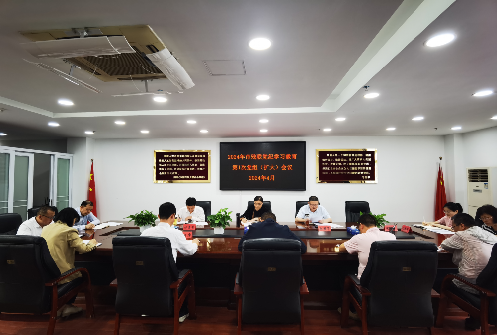 4月15日,市残联召开党组(扩大)会议,深入学习习近平总书记关于党纪学习教育的重要讲话和重要指示精神,传达学习中央党的建设工作领导小组研究部署党纪学习教育工作会议精神、省委常委会部署开展党纪学习教育工作会议精神和市委常委会暨市委党建工作领导小组部署开展党纪学习教育工作会议精神,研究部署全会党纪学习教育工作。会党组书记、理事长万里菲主持会议并讲话。