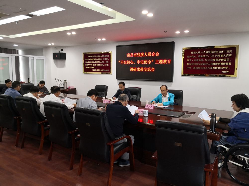 市残联党组在2019年10月23日下午召开“不忘初心、牢记使命”主题教育调研成果交流会。党组书记、理事长余颖主持会议并作交流发言。市委第六指导组副组长魏菊保到会指导。