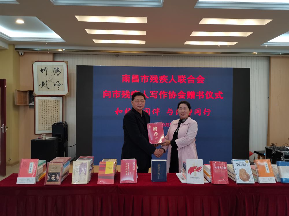 10月30日,在这菊黄蟹肥的丰收季节,南昌市残联在残疾人文化创意产业园举行以“和经典同伴·与信仰同行” 为主题的赠书仪式,向市残疾人写作协会赠送书籍约80册。市残联副理事长林善岳出席赠书仪式。