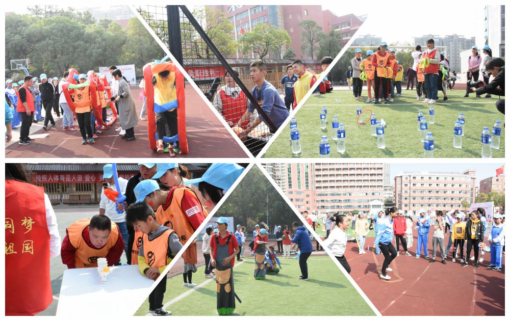 此次运动会包括“风火轮接力”、“袋鼠接力”、“定点投篮”、“乒乓球吹碗里”、“套圈游戏”、“单人跳绳”六项活动,共有来自南昌市启音学校、盲童学校、育智学校、培智学校的220余名残障学生参加。