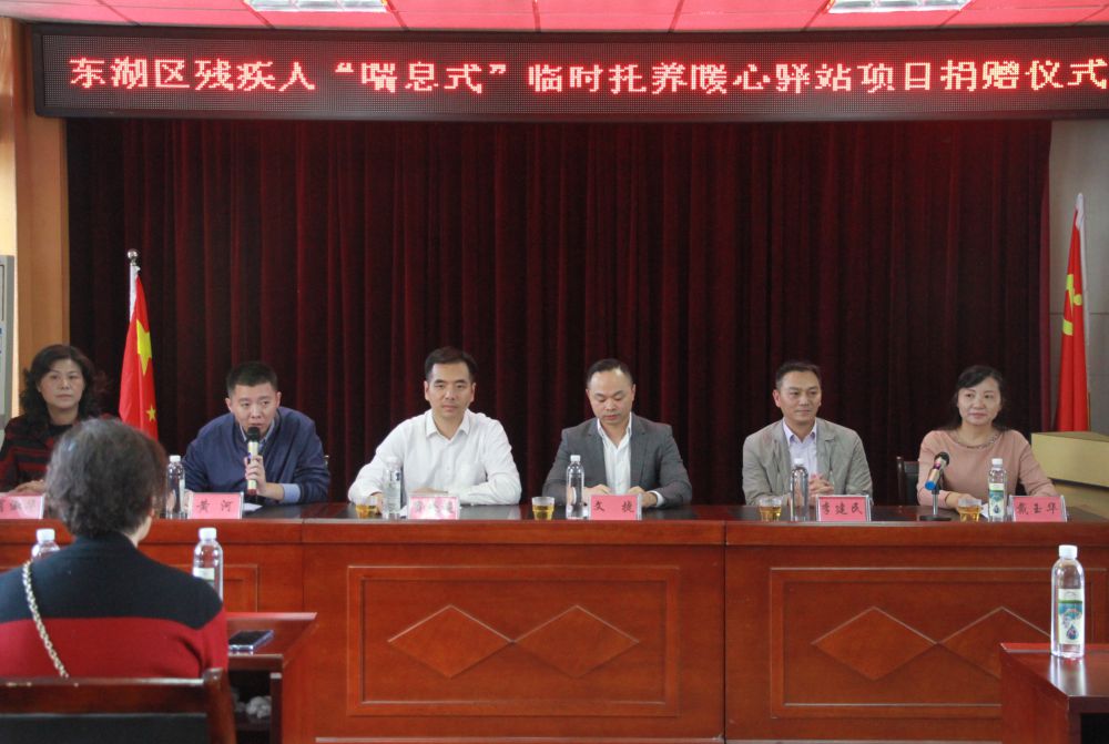 11月2日下午,东湖区残疾人“喘息式”临时托养暖心驿站项目捐赠仪式在南昌市培智学校举行,东湖区委副书记贾彧超、区残联负责人黄河、区教科体局副局长李建民、南昌市培智学校校长戴玉华、南昌市培智学校书记肖淑华参加活动。