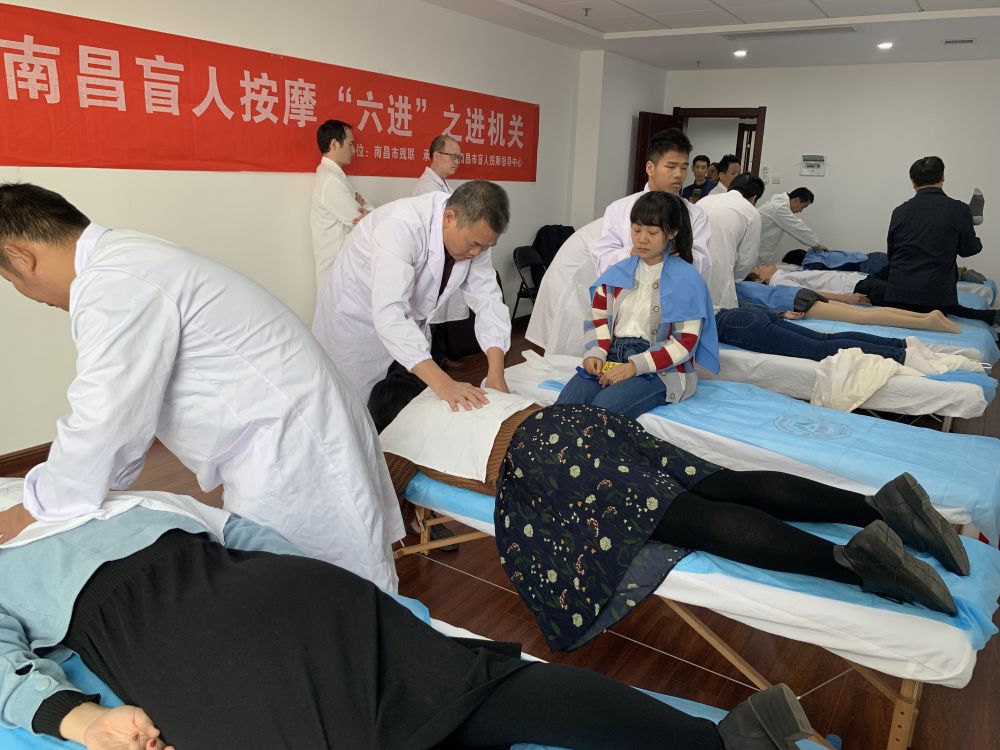 活动中,来自 “南昌盲人按摩”卢氏店、医健店和圣康店的10余名盲人按摩名师通过专业的现场诊治和按摩手法,为前来体验的干部职工提供义诊服务,感受“授人玫瑰,手留余香”的真情和温暖,盲人按摩技师在为机关干部职工服务的同时,耐心为他们讲解颈、肩、腰等部位的保健知识,教给他们一些简单易学的按摩方法。他们娴熟的搓、揉、拿、捏按摩技巧,令前来体验的机关干部职工纷纷为他们点赞。