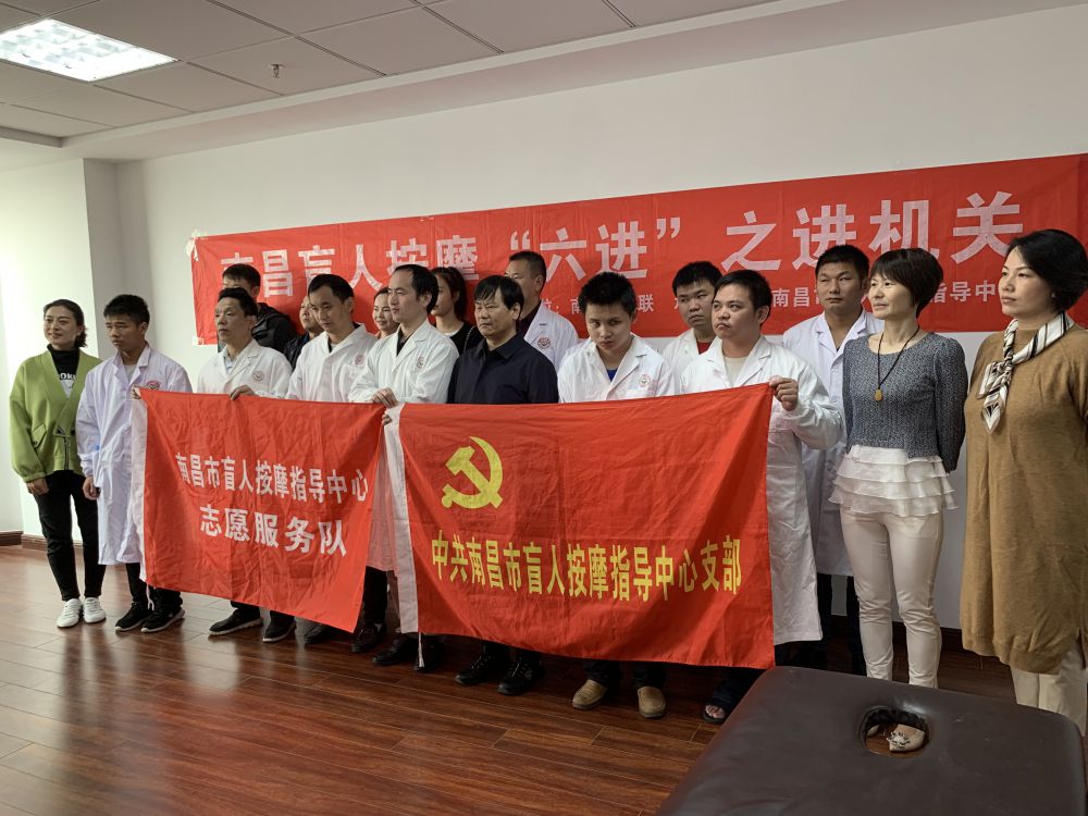11月8日上午,市盲人按摩指导中心副主任陈妍带领全体干部组织开展盲人按摩“六进”活动,走进南昌市医保局为机关干部提供免费按摩体验。