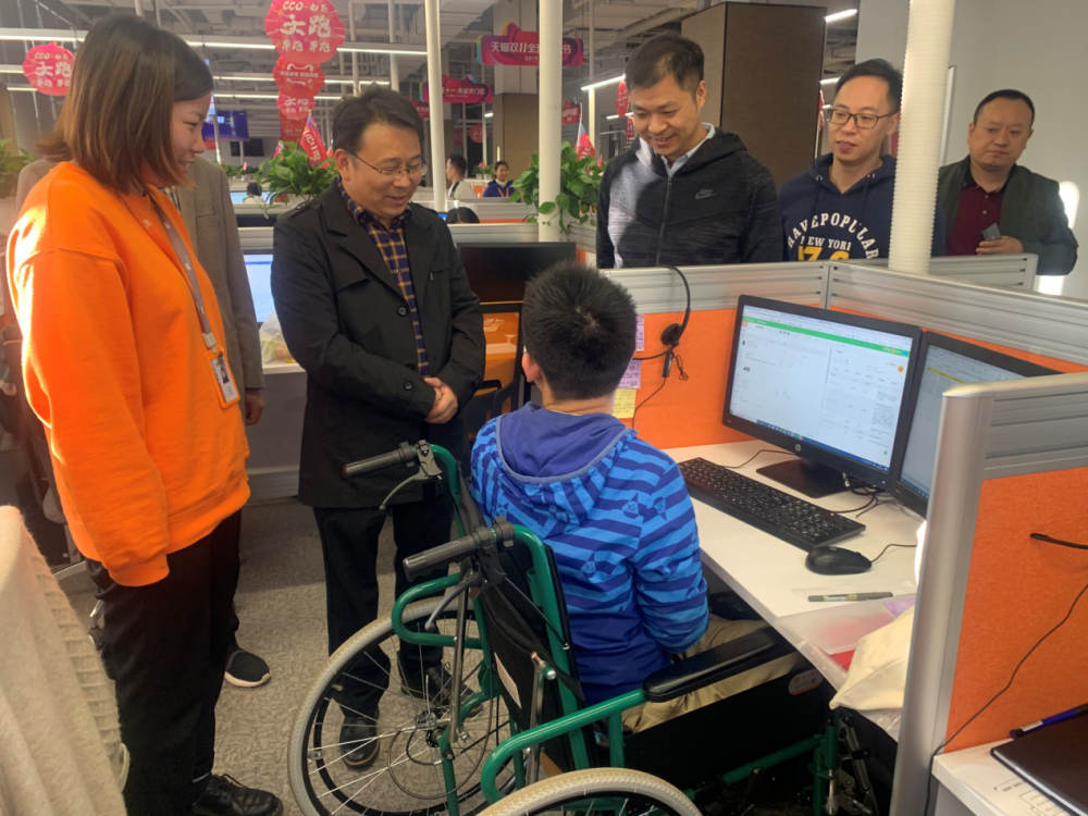 在全市深入开展学习“不忘初心,牢记使命”主题教育之际,为了提升南昌市残疾人劳动就业服务中心工作水平,提高残疾人就业率,经有关部门的牵线,市残联吴卫平副理事长一行人于11月14日下午到访南昌阿里巴巴客户体验中心,就业中心主任张望初,党支部副书记万伟华陪同,针对为更多残疾人提供工作岗位问题进行沟通和洽谈。