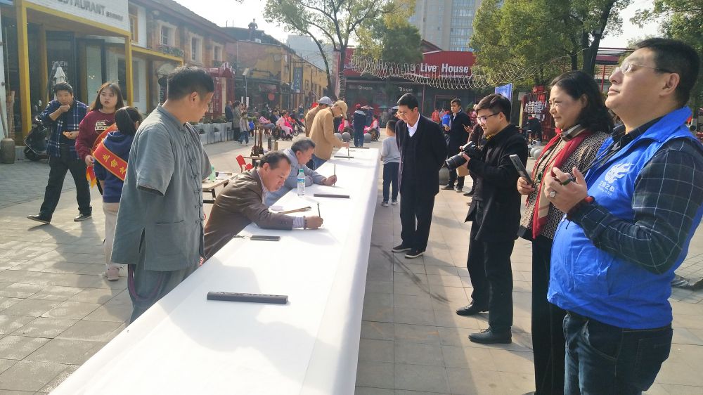 活动现场的“长卷创作”区,主题为“我爱我的祖国”20米书画长卷创作,邀请了江西美院原院长梁贤萍等6位知名书画艺术家与11位残疾人书画艺术家或爱好者一起挥毫,同卷泼墨,体现出残健融合和对祖国的共同祝福。