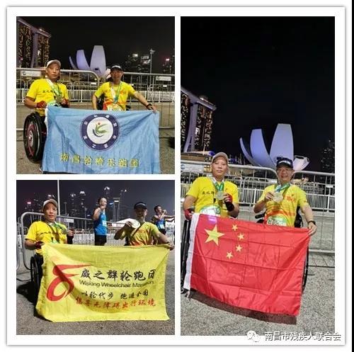 来自江西南昌轮椅乐跑团的两名成员——轮椅翘双前轮划行世界吉尼斯纪录保持者谢俊武和参加过江西省希望之家骨干伤友培训班的胡庆旺,在上海威之群机电制品有限公司全力赞助和南昌市脊髓损伤者希望之家大力支持下,2019年11 月 30 日晚参加了2019渣打银行新加坡国际马拉松赛(SCSM),这是中国非竞速轮友第一次参加国外马拉松赛。