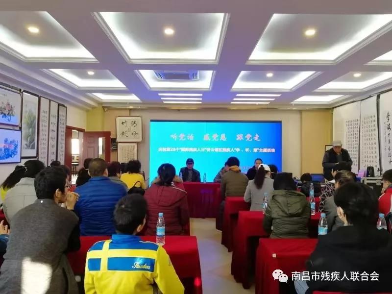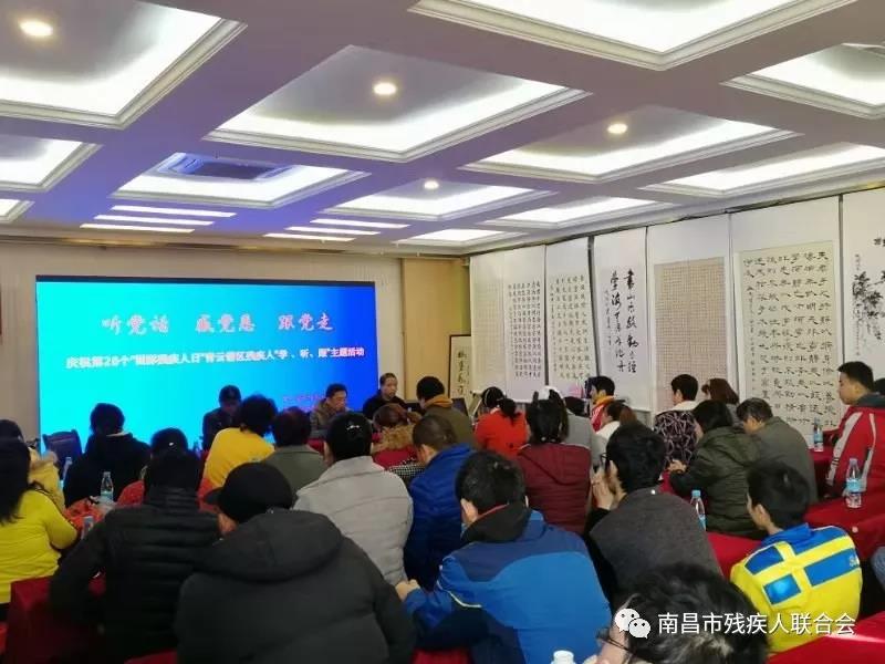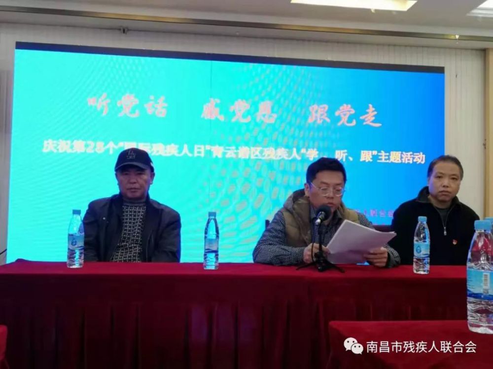 第28个“国际残疾人日”到来之际,在青云谱区残疾人联合会的部署下,青云谱区肢残人协会组织协会会员在青云谱区残疾人之家举办庆祝第28个“国际残疾人日”暨“听党话、感党恩、跟党走”主题座谈会,座谈会由区肢协副主席刘进萍主持。区肢协主席罗保兴宣读了《江西省残联“学听跟”专项活动实施方案》和南昌市残联《全市残联“学听跟”活动实施方案》,结合学习贯彻习近平新时代中国特色社会主义思想,着重宣读了习近平总书记有关残疾人工作以及脱贫攻坚的的重要论述,让与会的肢残人真切感受到习总书记以及党和政府对残疾人的关心和关爱,坚定了大家“听党话、感党恩、跟党走”信心和决心。
