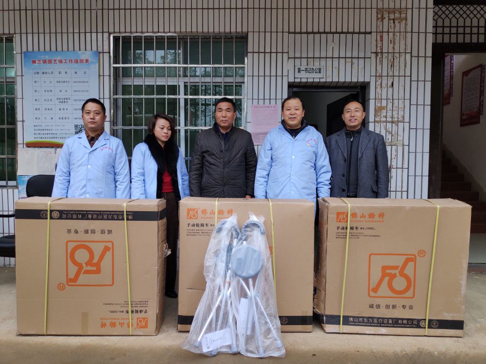 在幽兰镇园艺场,一行人给贫困残疾人配送轮椅、手杖凳等辅具(用品),为他们讲解辅助器具使用方法,解答了他们在康复辅具知识方面的疑点,鼓励他们要自强不息,坚强乐观面对生活。