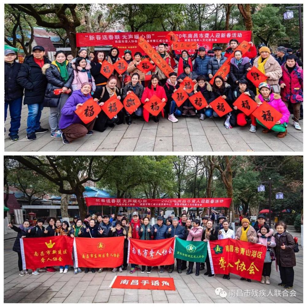 为喜迎2020的到来,元月5日上午,南昌市聋人协会、南昌市青汇成公益发展中心、南昌市残疾人文学艺术联合会联合在南昌八一公园手语角举办南昌市聋人迎新春活动,得到东湖区聋协、西湖区聋协、青山湖区聋协、青云谱区聋协、新建区聋协的响应和协助,还有刚刚成立的湾里区聋协积极加入,大家团结一心,同心同德,共同携手向全面小康的美好梦想出发。