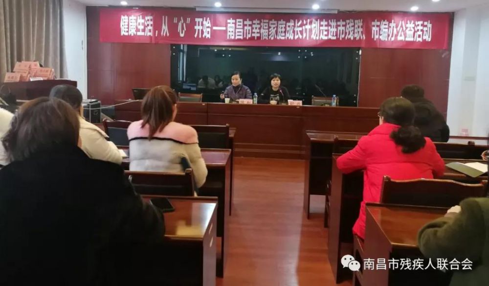 为深入贯彻习近平总书记“加强社会心理服务体系建设,培育自尊自信、理性平和、积极向上的社会心态”指示精神,提高我会干部职工阳光、健康、积极的心理素质,促进其快乐工作、和谐生活、全面发展,1月9日下午,市残联妇工委举办了健康生活,从“心”开始——幸福家庭成长计划公益讲座,邀请市政协委员、南昌静心社创始人、国家二级心理咨询师、2019年“三风榜样人物”陈虹老师以“亲子教育”为主题授课,会议由市残联工会主席舒丹主持。市残联机关各处室和下属单位共40余人参加。