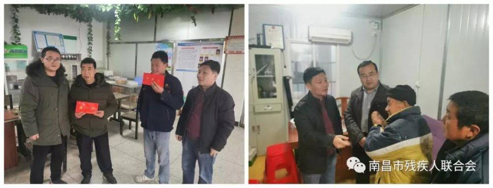 为进一步加强省、市阳光助残创业就业基地的规范化管理,1月14日,市残联教就处分别来到湾里区、安义县检查省市阳光助残创业就业基地情况,并走访慰问残疾员工,向残疾员工们致以节日问候,同时为6名困难残疾员工送上慰问金,让大家感受来自残联娘家人的温暖和关爱。湾里区残联理事长贺学风、安义县残联理事长杨志雄及相关工作人员一并参加检查和慰问。