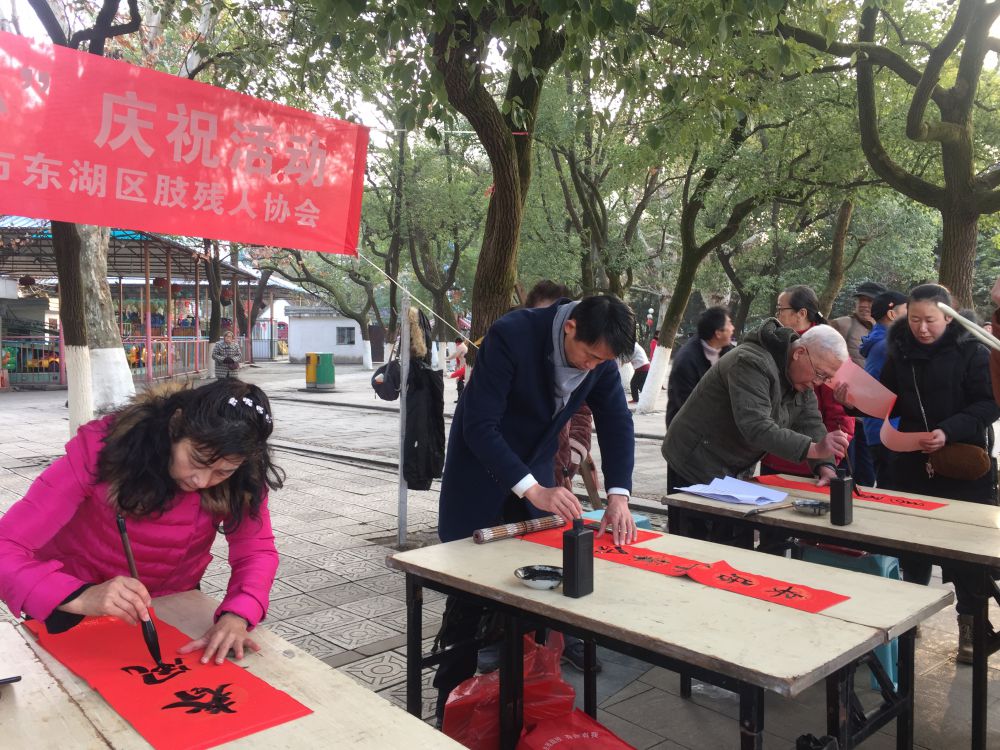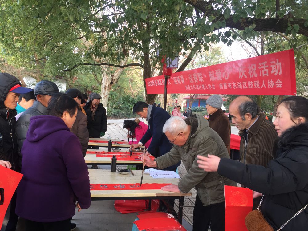 时值春节将至,为丰富残疾人朋友文化生活,1月19日上午,东湖区聋协、东湖区肢协在八一公园,携手组织开展“迎新春·送春联·献爱心”公益庆祝活动。残友书法家齐聚挥毫泼墨,为市民朋友和残友献上亲手书写的春联,一同喜迎新年。