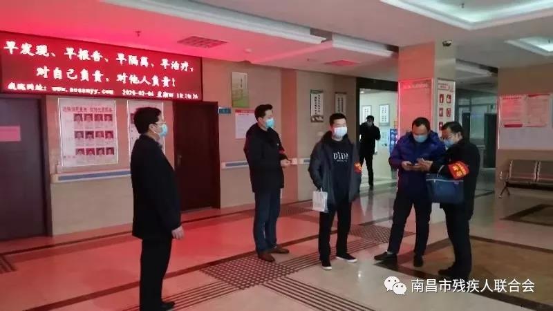 2月6日,市残联“机关党建+联防联控”党员突击二队,在队长林善岳副理事长带领下来到南昌市按摩医院督导疫情防控工作。