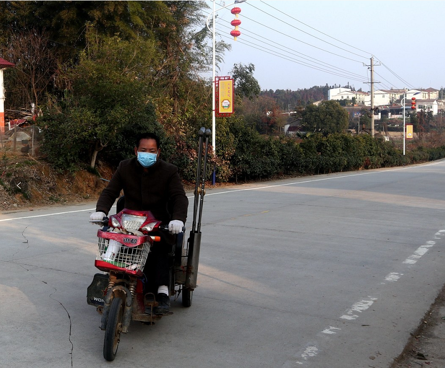 这个声音来自一辆移动宣传车,而这辆车却是一辆残疾人代步车,它的主人叫方人平,今年56岁,是新建区铁河乡木莲村一位先天残疾人。2013年,患有肢体残疾的方人平纳入乡里贫困系统,在享受光伏扶贫和社会保障等扶贫政策同时,还担任了村里的图书管理员。近年来,在区残联、乡党委政府的政策扶持、帮扶干部帮扶下,于2019年顺利脱贫。他也曾说过,受过党的恩惠,帮扶干部经常走访,帮助他解决实际困难,自己都记在心里,现在疫情当前,自己想为大家做点事情,奉献自己一点力量。