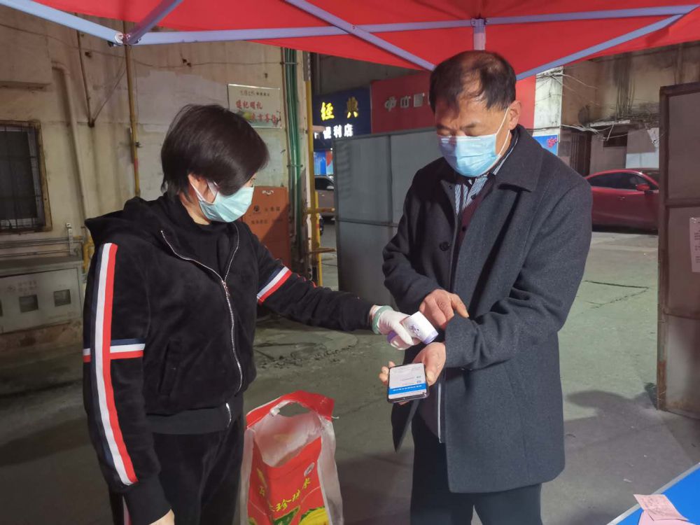 “您好,请出示下您的通行证。”“您好,请配合一下测量体温。”“您好,今天天气寒冷,请增添衣物,注意防寒保暖!”......在新建区湖畔家园开放小区卡点,区残联党员干部正在忙碌不停。