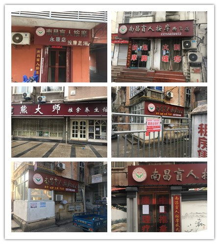 东湖区10家盲人按摩机构主要分布在公园街道2家、百花洲街道1家、董家窑街道3家、豫章街道4家等4个街道。在市区街三级残联的广泛动员、及时宣传下,10家盲人按摩机构积极响应国家、省、市、区有关疫情防控的号召,暂时停止了一切按摩保健经营性服务。经排查,10家盲人按摩机构及20余名按摩从业员暂无发生发热情况,防护知识和措施宣传到位。