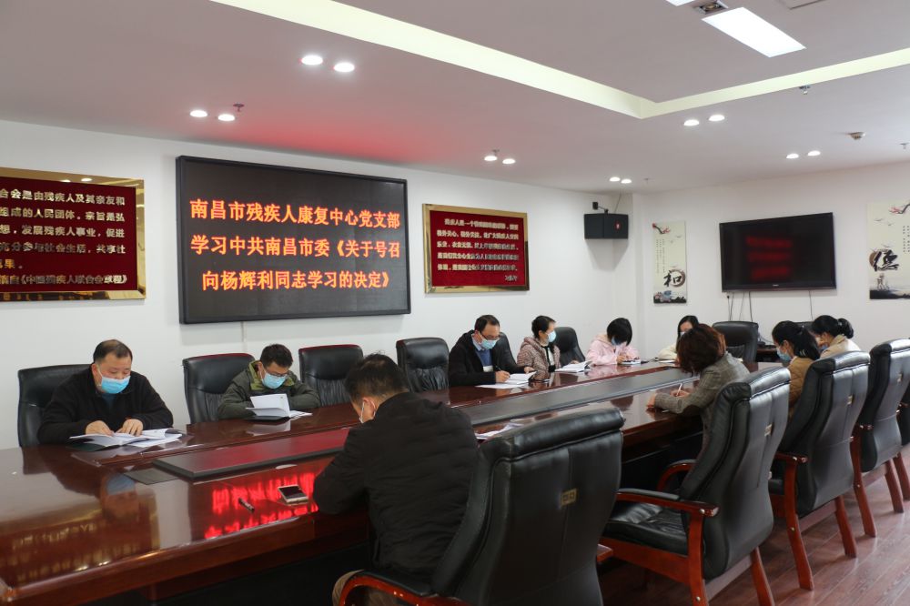 3月13日下午,市残疾人康复中心组织全体党员干部职工学习《中共南昌市委关于号召向杨辉利同志学习的决定》文件,学习杨辉利同志的先进事迹。康复中心支部书记杨昕主持。
