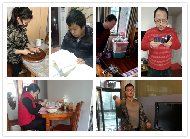 区仁爱之家残疾人日间照料中心利用微信群与残疾人及其家长建立起线上沟通交流渠道,通过视频方式指导家长结合家居环境条件给残疾人安排适合的培训项目,洗菜、读书、锻炼……老师根据学员的兴趣与个性,进行家居等相关活动的指导,并对家长的问题进行线上解答,从而提高了精神残疾人家居康复训练的质量。