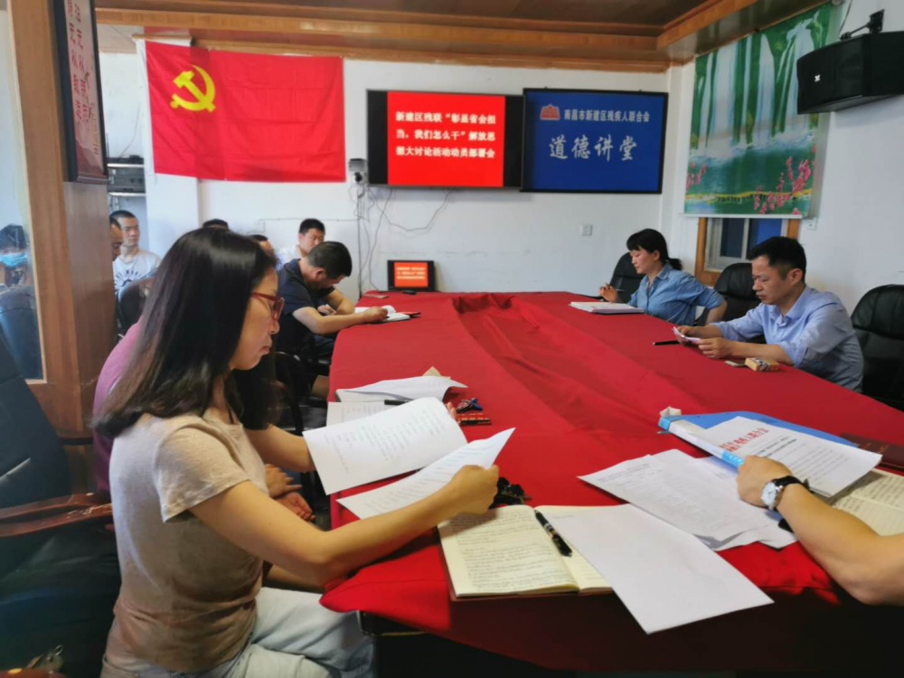 “彰显省会担当,我们怎么干”解放思想大讨论的号角已经吹响,助残扶残和现代产业新城新区的蓝图已经绘就,我们要在区委区政府的坚强领导和市残联的精心指导下,以学、比、赶、超的信心和决心,只争朝夕。不负韶华,一以贯之地奋力实施“龙腾”工作策略,履行好“代表、服务、管理”的职能,以打造“五个”残联为目标,同心同德,同力同行,撸起袖子加油干。着力实现我区残疾人工作高质量跨越式发展,为做大、做强、做优大南昌都市圈,奋力打造新建现代产业新城新区,作出我们残联人应有的,巨大的贡献。