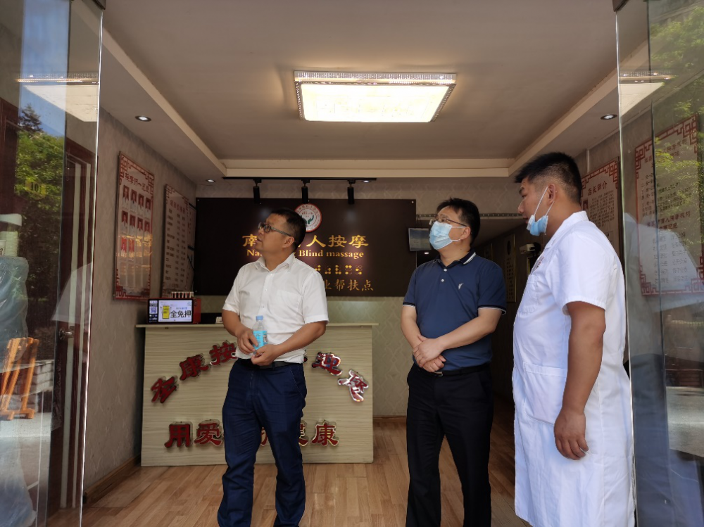 为更好地掌握我市盲人按摩机构复工复产、疫情防控等情况,5月19日下午,市残联副理事长吴卫平对红谷滩新区“五统一”打造的南昌盲人按摩机构进行实地走访,市盲导中心主任徐礼旭等陪同走访。