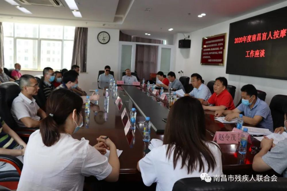 为打造南昌盲人按摩品牌,做大做强做优南昌盲人按摩,进一步推动南昌盲人按摩事业的健康有序发展,5月18日下午,2020年度南昌盲人按摩工作座谈会在市残联5楼召开。市残联党组书记、理事长余颖,市残联党组成员、副理事长吴卫平,市残联理事、盲协主席芦爱生出席,市盲导中心全体工作人员、盲按机构负责人代表30余人参加会议。
