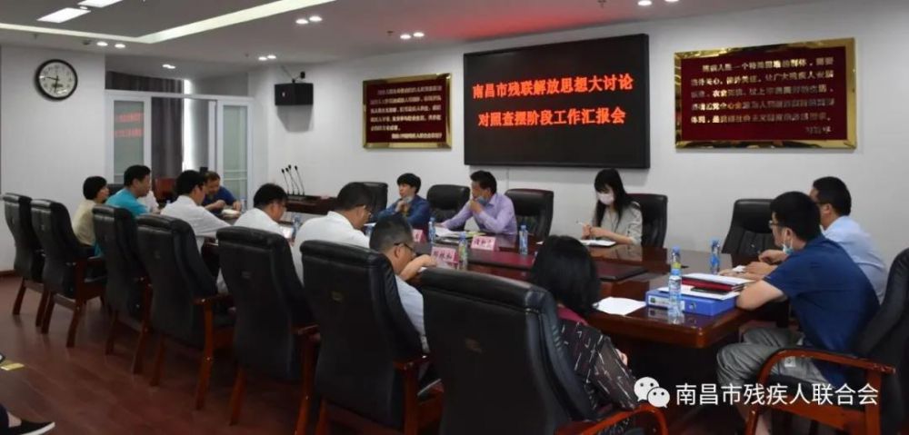 吴卫平主持会议,林善岳就市残联解放思想大讨论对照查摆阶段工作作了“四学三找十大行动”专题汇报: