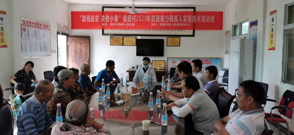 为贯彻落实市残联“彰显省会担当,我们怎么干”解放思想大讨论活动安排部署,进一步丰富“扶残助残宣传月”活动内容,增强党支部创造力、凝聚力和战斗力,充分发挥党建共建的互融互促作用,5月26日下午,市残联机党总支专职副书记周红华带领盲导中心党支部全体党员干部深入结对共建帮扶村新建区昌邑乡窑西村,开展党建帮扶+南昌盲人按摩“六进”志愿服务暨贫困视力残疾人实用技术培训活动。