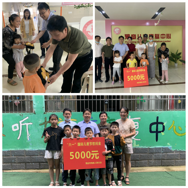 “六一”国际儿童节来临之际,为进一步增强社会责任感,传递关爱残障儿童正能量,6月1日,市残联副理事长吴卫平一行先后来到红谷滩新区豫章儿童康复中心和湾里区可爱宝贝听力语言康复中心开展“六一”走访慰问活动,给残疾儿童们和辛勤工作的老师们带去了节日的问候和美好祝福,并送上慰问金,湾里区残联理事长贺学风陪同。