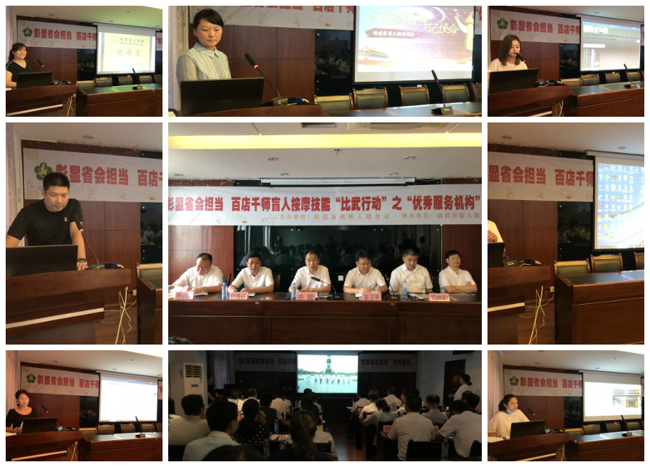 为深入贯彻党的十九大精神,切实增强我市“彰显省会担当,我们怎么干”解放思想大讨论活动成效,6月30日,百店千师盲人按摩“比武行动”之十佳优秀服务机构评选活动在市残联六楼会议室召开。市残联党组书记、理事长余颖,党组成员、副理事长林善岳、邓林和,四级调研员徐训波,市残联理事、市盲协主席芦爱生出席活动,市残联党组成员、副理事长吴卫平主持活动,各县区残联理事长、负责盲人按摩工作人员以及市盲导中心工作人员、市盲协委员等近五十人参加活动。