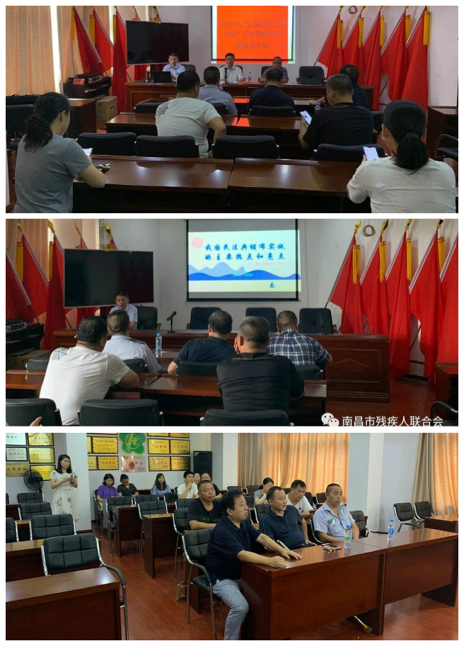 为进一步推进县区残疾人普法工作,让法律热点走到群众身边,走进群众心里,7月2日上午,市残联邀请北京市中银(南昌)律师事务所胡顺如律师来到南昌县残联,开展2020年“南昌残友.法治学堂”送法助残活动,就当下法律热点——民法典的相关知识举办专题普法讲座。市残联党组成员、副理事长林善岳出席。