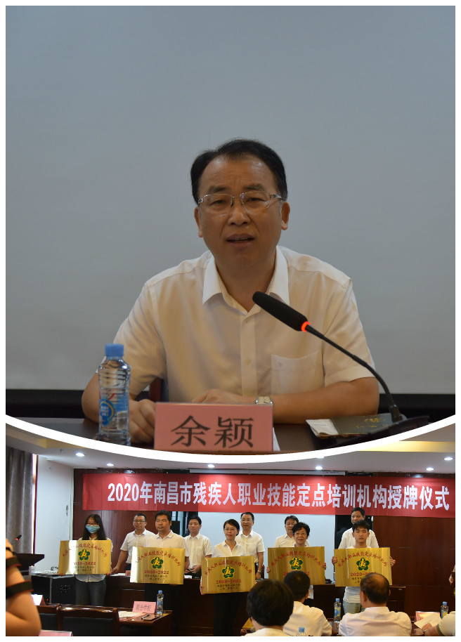 仪式上,余颖对入围的17家培训机构表示祝贺并授牌。他带领全体参会人员宣读南昌残联人誓言。