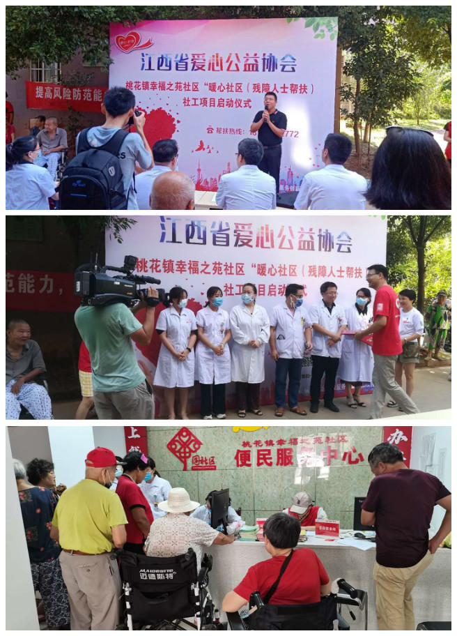 2020年8月1日,由西湖区桃花镇幸福之苑社区与江西省爱心公益协会共同开展的“暖心社区”(残障人士帮扶)社工项目正式启动,桃花镇党委书记吴涛、人大副主任熊林、挂点领导谢寅启等出席启动仪式。
