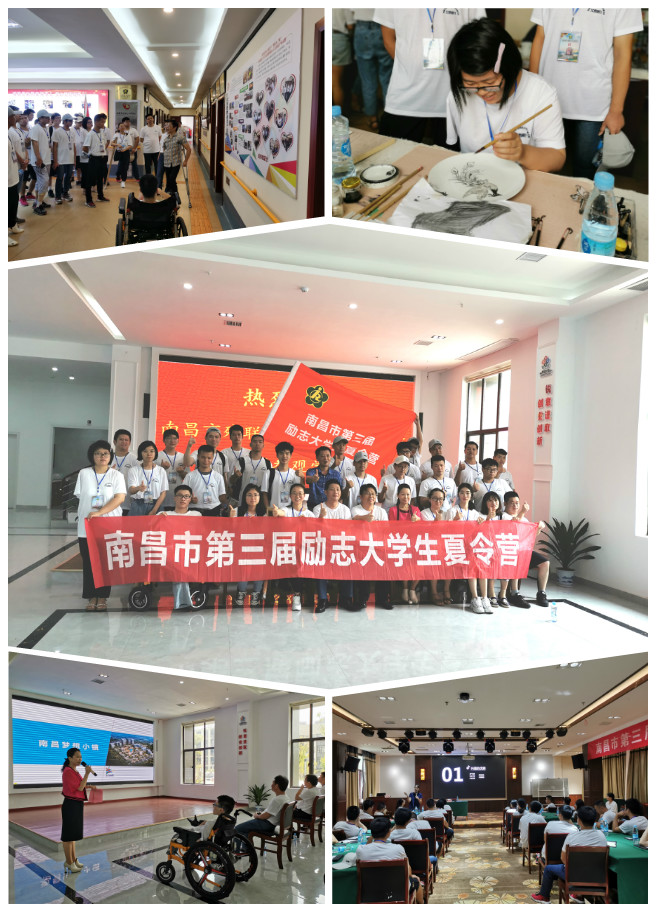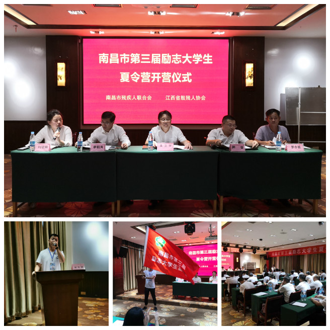 为更好地激励残障大学生奋发进取,提升就业创业能力,增强自信,创造美好人生,8月21日下午,南昌市第三届励志大学生夏令营开营仪式在美丽的新建区举行。市残联党组成员、副理事长吴卫平,省肢协主席、江西银行授信审批部副总经理熊俊,江西银行铁路支行行长廖新海,新建区残联理事长罗水根出席并致辞,市残联教就处副处长刘瑞娟主持仪式,来自全市各县(区)的29名励志大学生和陪护、工作人员共计50余人参加仪式。