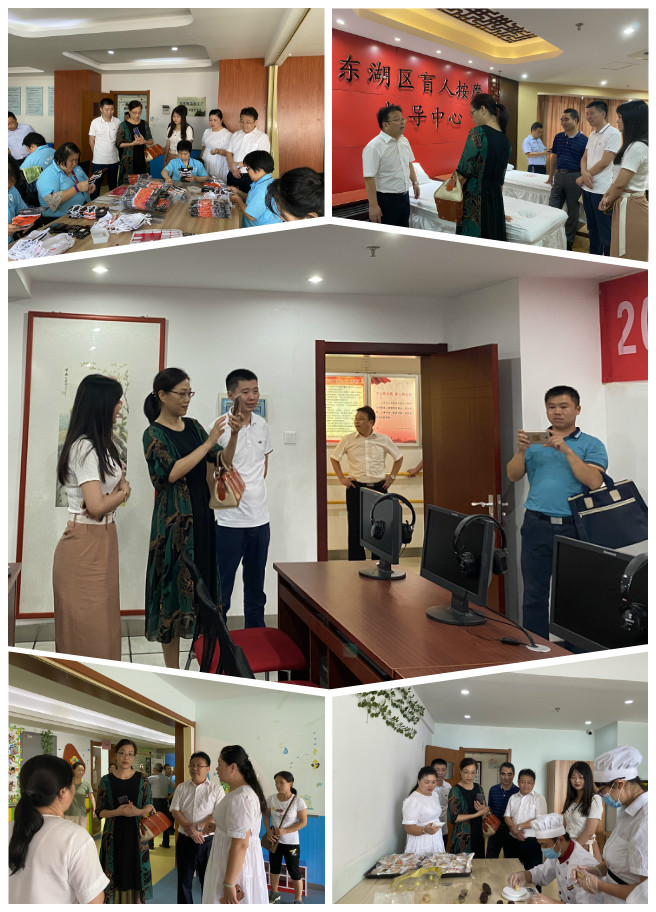 康立勇一行认真听取了东湖区残联理事长黄河关于残疾人教育就业、康复托养工作的介绍,参观了各功能教室,看望了正在进行口罩加工和原生态绘画创作,以及月饼制作的精障辅助性就业会员,鼓励他们树立康复信心,实现人生价值。