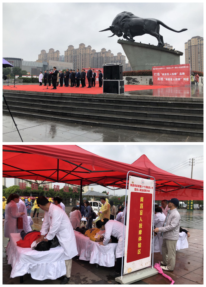 2020年10月15日是第37个“国际盲人节”,为进一步促进我市残疾人就业,增强视障人士自尊、自信、自强、自立精神,实现南昌残疾人工作“全省站首位 全国列前位”的工作目标,彰显省会担当,加快南昌盲人按摩品牌化、规模化、产业化发展进程。10月15日上午,在青山湖区罗家广场举办庆祝第37个“国际盲人节”暨视障人士就业招聘大会。省残联党组成员、副理事长田颖汉,市政府副市长樊三宝出席活动并讲话,市政府副秘书长王小文、市残联党组书记、理事长余颖、中共青山湖区区委书记王强等省市区相关领导出席活动。活动上,中共青山湖区委书记王强致辞,省、市、区领导为获得“五统一”打造南昌盲人按摩“十佳优秀服务机构”“十佳优秀服务提名机构”以及盲人按摩“二十技术能手”颁发了奖牌。活动现场,二十名盲人按摩技师现场免费为市民体验了按摩,赢得了一片好评。活动现场吸引了近百名有就业意向的残友应聘。