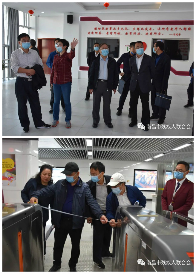 抽查组专家在天同医养院对老人医养房、无障碍通道等设施进行了检查,并参观了智能化养老样板间。在铜锣湾广场对商场无障碍电梯、残疾人公共停车位等公共设施进行实地核验。在庐山南大道地铁站实地检查了无障碍进站闸机,体验了从站内到站外无障碍电梯的衔接,并与一名推轮椅的老年候车人进行交流。在赣江大道会展路口和红谷中大道检查了盲道、缘石坡道、语音交通信号灯等公共交通设施。在赣江大道和会展路交界口城市管理服务站对坡道、无障碍室外公厕进行查验。在凤凰家园社区对社区服务站无障碍设施建设情况进行检查。在江纺二区,抽查组专家走进杨培良、魏水根两位老人家中对老年人家庭无障碍改造情况进行实地核查。