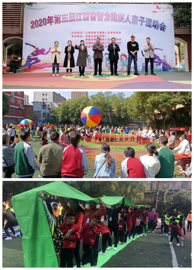 为丰富智力残疾人的文化体育生活,增强智力残疾人良好的体育素养提升智力残疾人的道德情操,促进智力残疾人体育事业的迅速发展。10月24日上午, 2020年江西省第三届智力残疾人亲子运动会在东湖小学顺利召开。江西省智力残疾人及亲友协会副主席彭志春,南昌市培智学校督学李剑,东湖区智力残疾人及亲友协会主席、南昌市培智学校校长戴玉华,东湖区射步亭社区主任胡梅,南昌市金指数实业有限公司总经理魏璋,江西省智力残疾人及亲友协会副主席、南昌市培智学校副校长熊卫华参加活动。